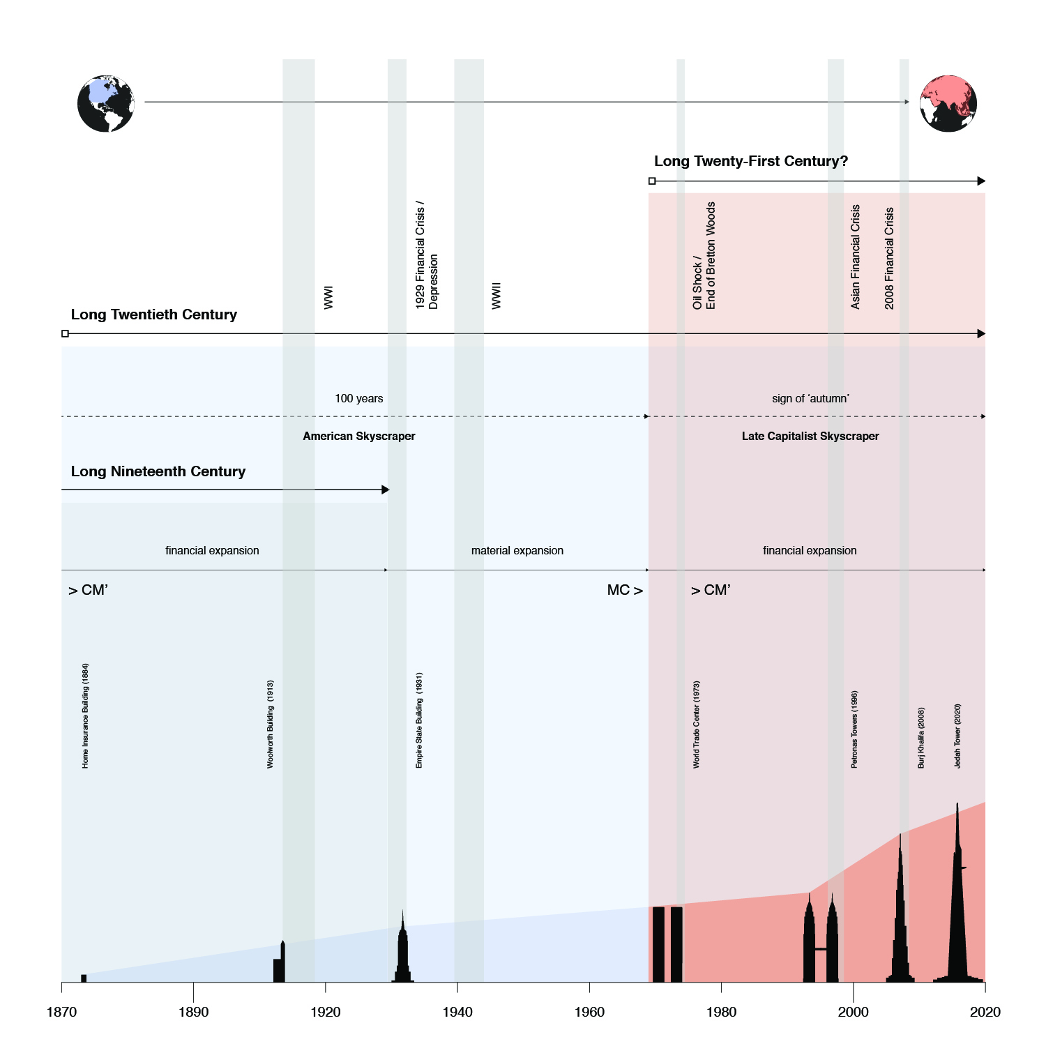 Composite visualization of four global transportation matrices—roads, aviation, shipping, and railways—to show major logistics infrastructures and circulatory pathways that support the regularized flow of people, material, energy, commodities, and waste into and out of major metropolitan centers.
